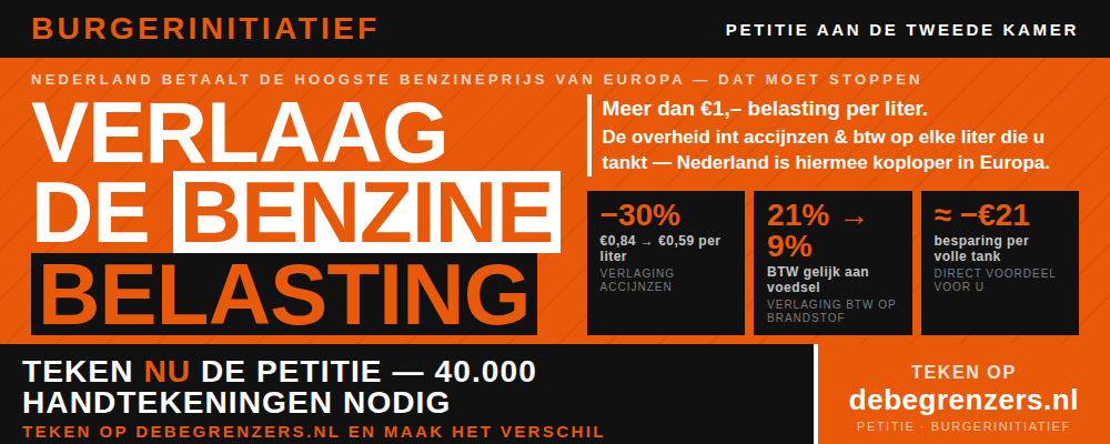 Nederland betaalt de hoogste benzineprijs van heel Europa. Niet door pech, maar door bewuste politieke keuzes. De overheid strijkt op elke liter meer dan een euro op aan belasting. En intussen doet Den Haag niets. Elke keer dat je tankt, gaat het grootste deel van wat je betaalt niet naar de brandstof – maar naar de schatkist. Via accijnzen en btw pakt de overheid structureel te veel van u af. Terwijl andere Europese landen hun inwoners wél verlichting bieden, kijkt de Nederlandse politiek toe en schept ze steeds nieuwe manieren om uw geld uit te geven aan zaken die u nooit heeft gevraagd.